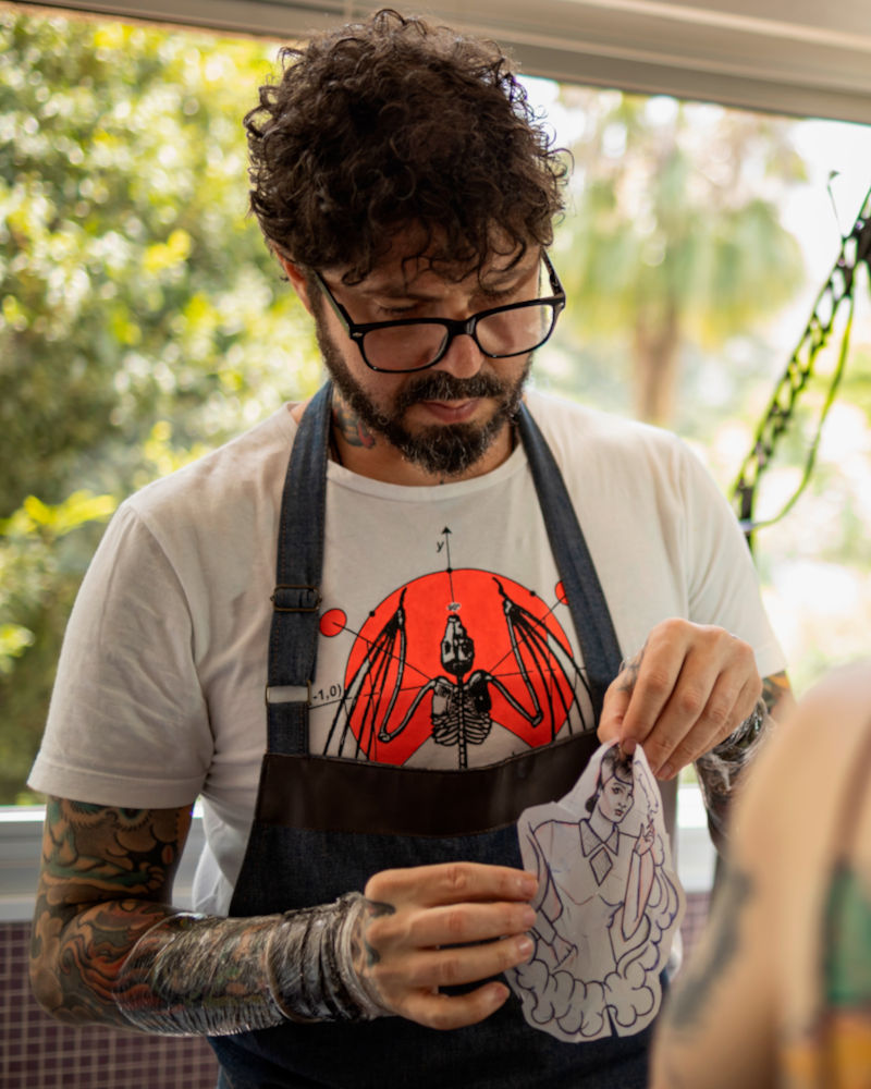 Arthur de Camargo atua como tatuador desde 1998 em São Paulo – SP. Trabalha com escolas clássicas de tattoo, fechamento japonês (irezumi), inspirações em ilustrações retrô dos anos 70, 80, 90, além de ser perito em coberturas e reformas. Como artista, vai além da tattoo, trabalhando também com arte customizada, pintura de interiores, ilustrações e outros campos de trabalho, dentro da streetart e fineart.